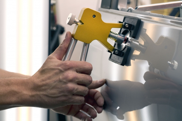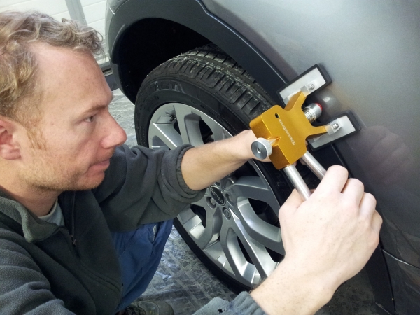 PDR vytahovací kleště na promačkliny : jednoduchý a efektivní nástroj na odstraňování promačklin bez poškození laku. Poškozené místo karoserie důkladně očistíme(technický benzín). Tavným lepidlem se do dna promačkliny fixuje speciální klip. Ten se uchytí pákovým mechanismem a pohybem páky je jednoduše a kontrolovaně promačklina vytahována.